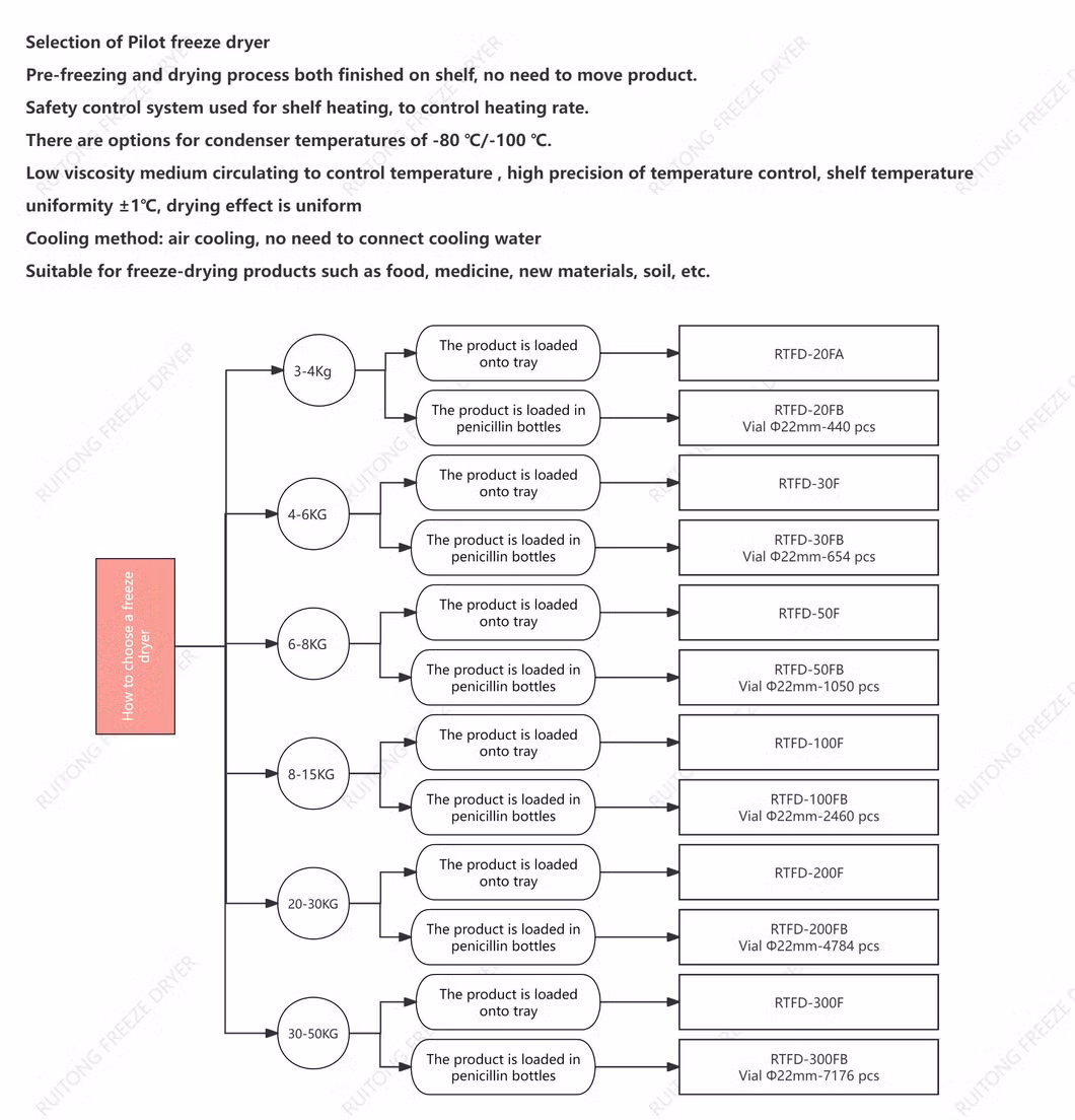 Осушитель антифриза RTFD-100FB типа пробки , он подходит для проведения эксперимента по замораживанию в лабораторных условиях и при производстве небольших объемов. Он используется для продукта в бутыли и продукта во флаконе . *конденсатор с равномерной и хорошей функцией захвата льда