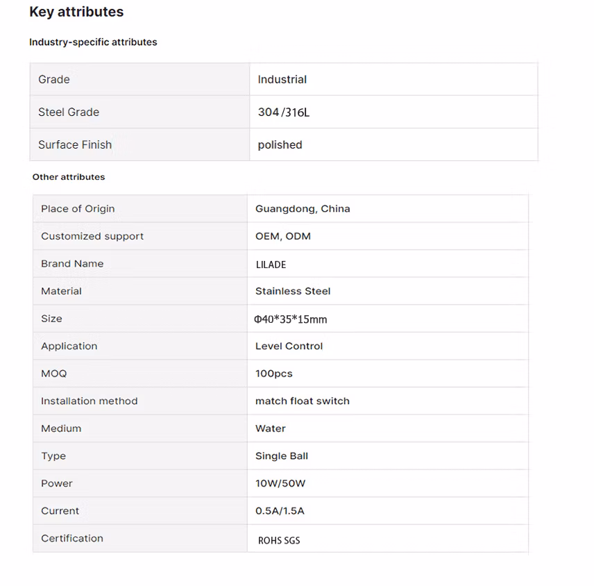 Ниже приведены различные типы плавающих шариков из нержавеющей стали для справки: